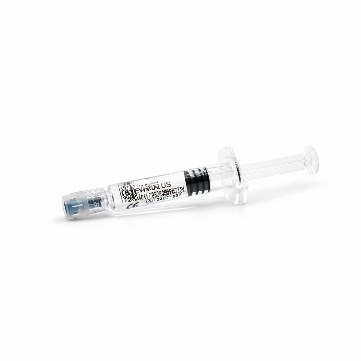 Estuche con 1 jeringa prellenada de 2 ml y cánula estéril de 23G.